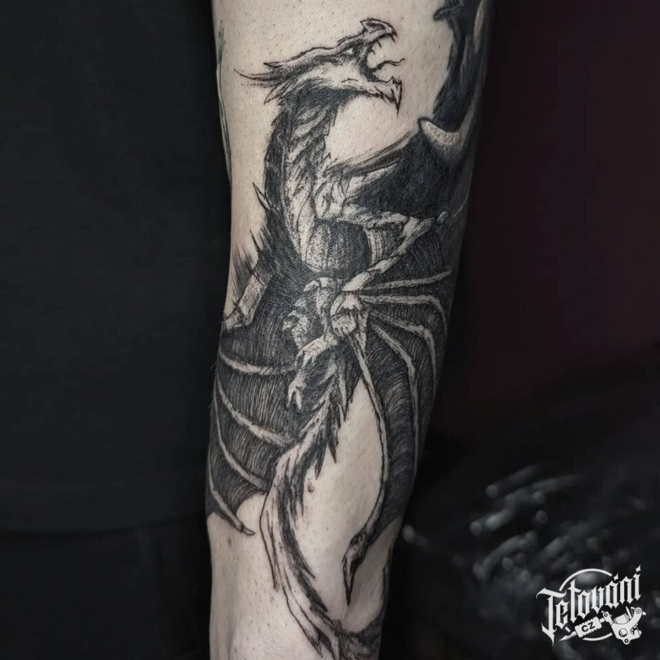 Tetování mýtická bytost drak na rameno