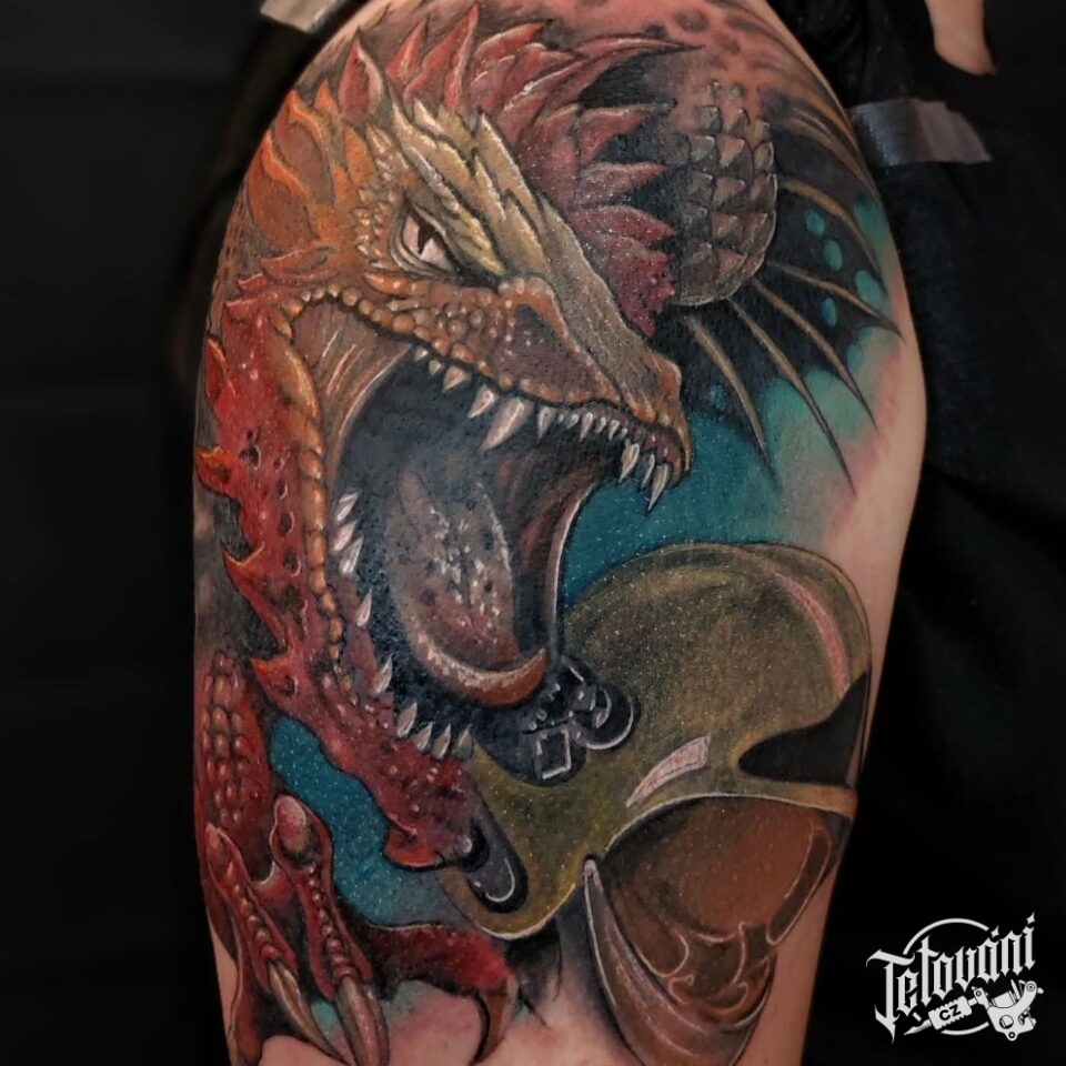 Tetování mýtická bytost drak na rameno