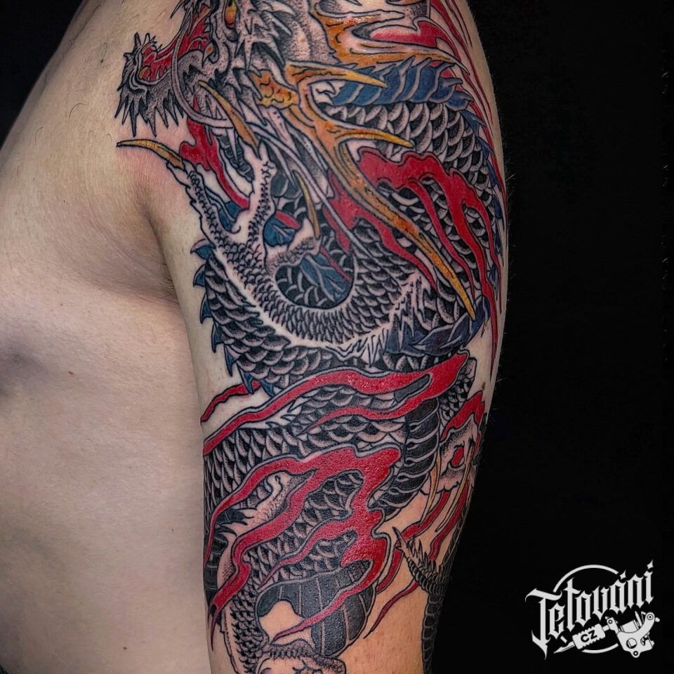 Tetování mýtická bytost drak na rameno