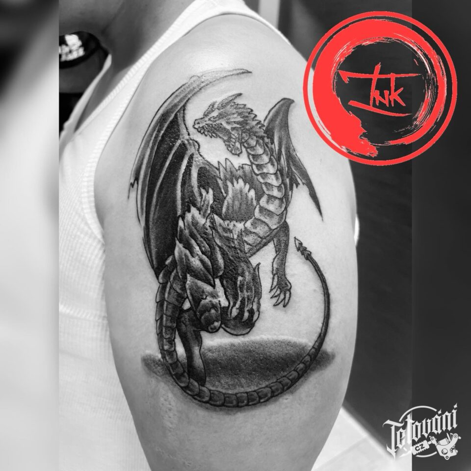 Tetování mýtická bytost drak na rameno