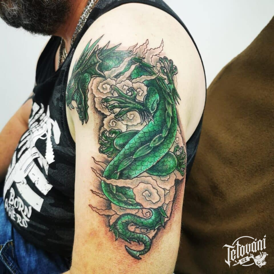 Tetování mýtická bytost drak na rameno