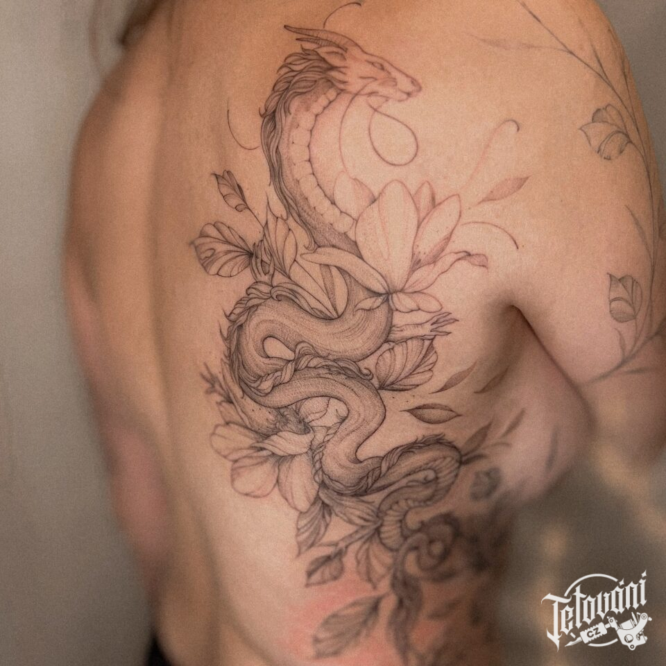 Tetování mýtická bytost, drak na zádech