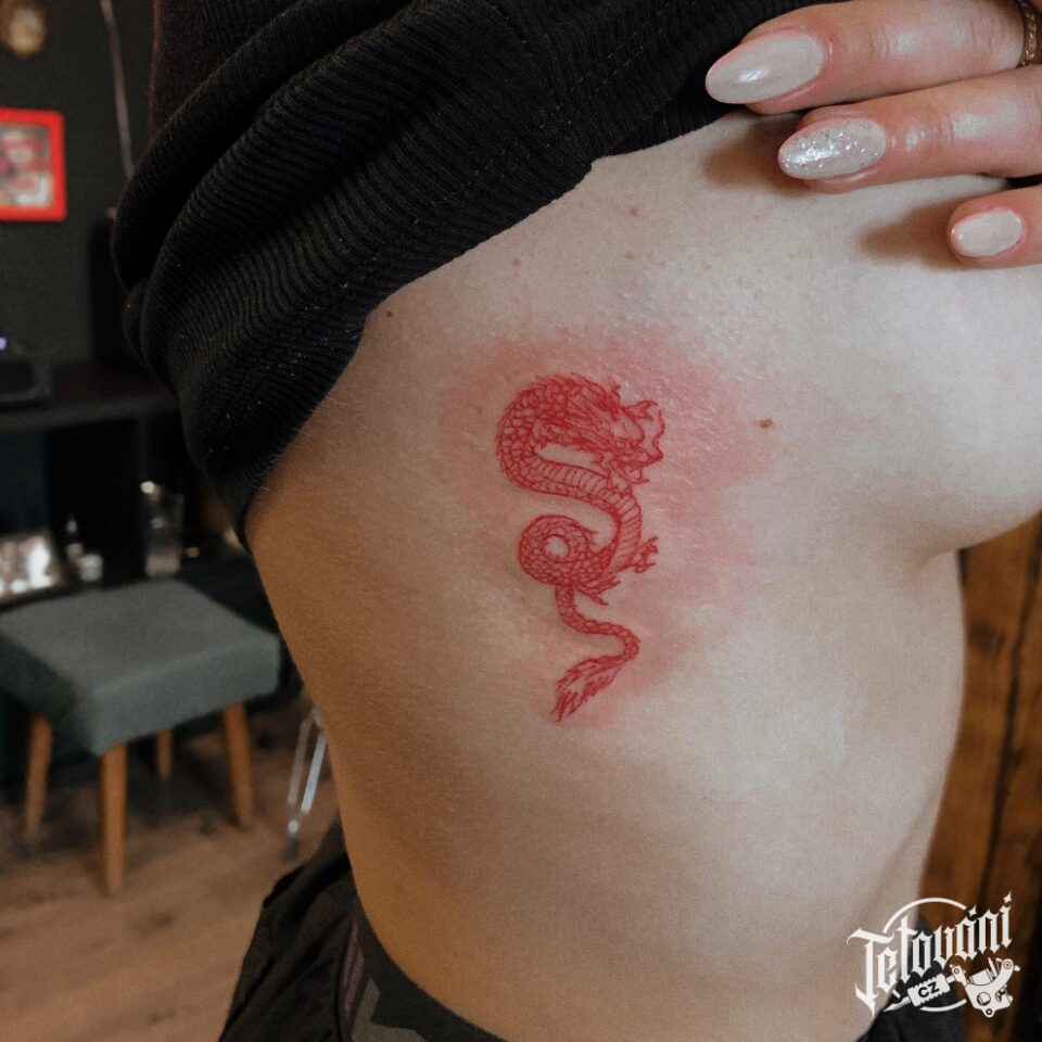 Tetování mýtická bytost drak na žebra