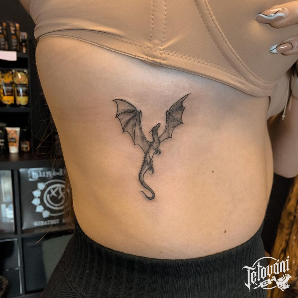 Tetování mýtická bytost drak na žebra