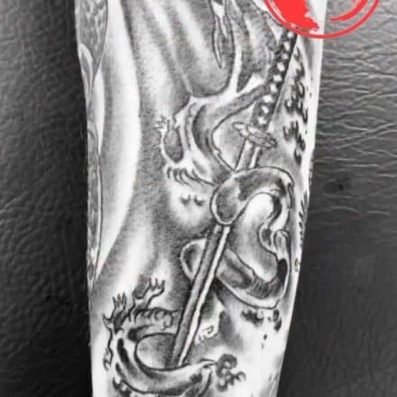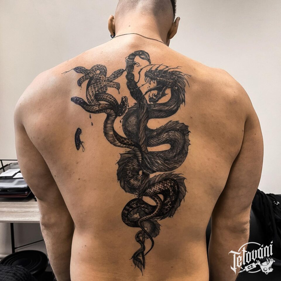 Tetování mýtická bytost drak s hadem, zvíře na záda