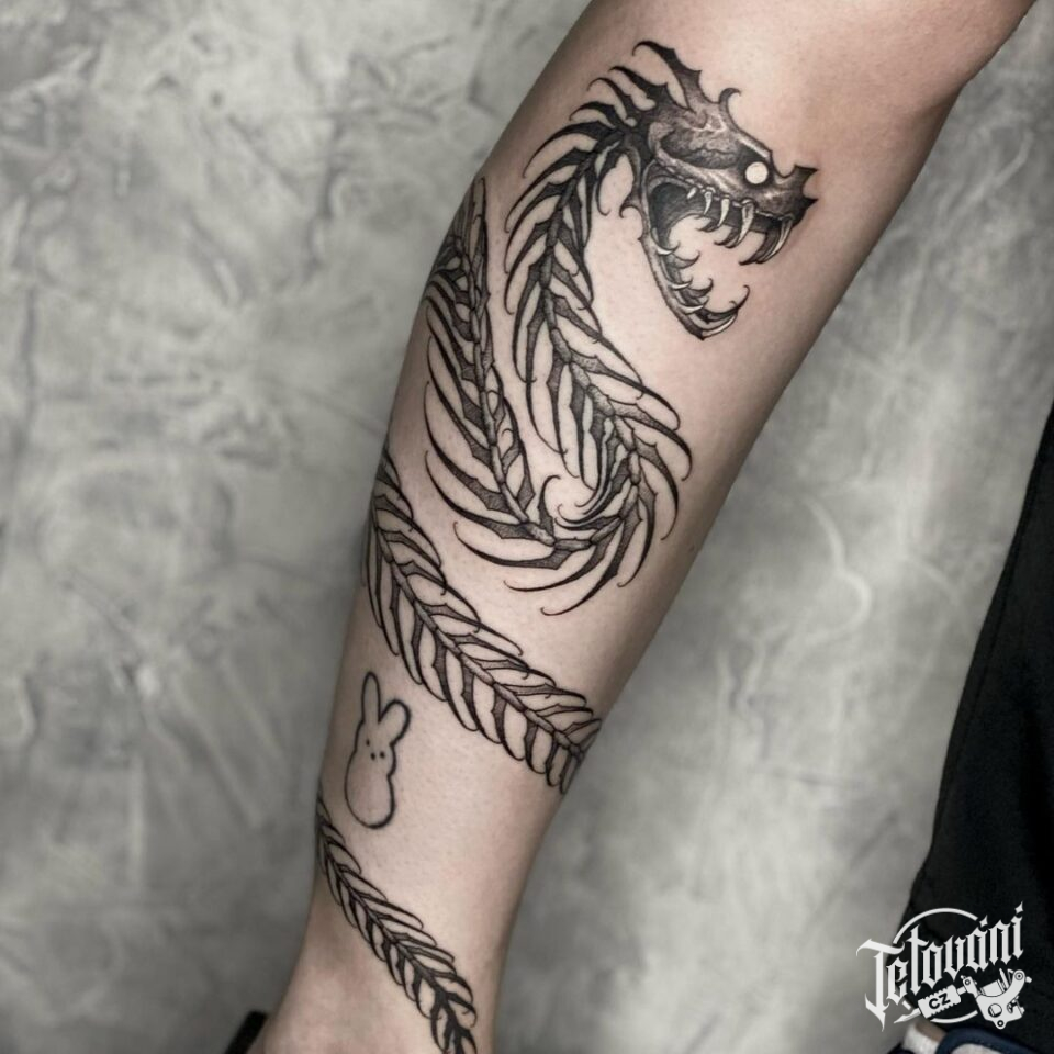 Tetování mýtická bytost drak symbol síly na předloktí