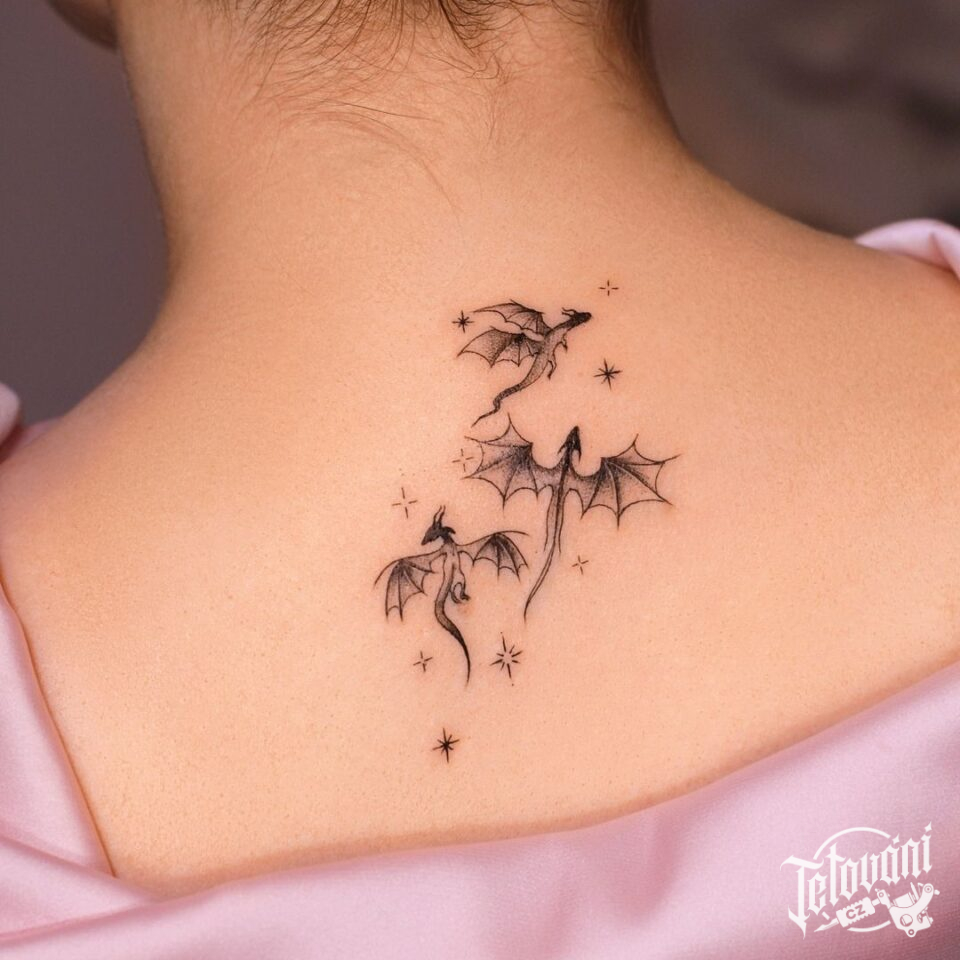 Tetování mýtická bytost, drak, symboly na páteř