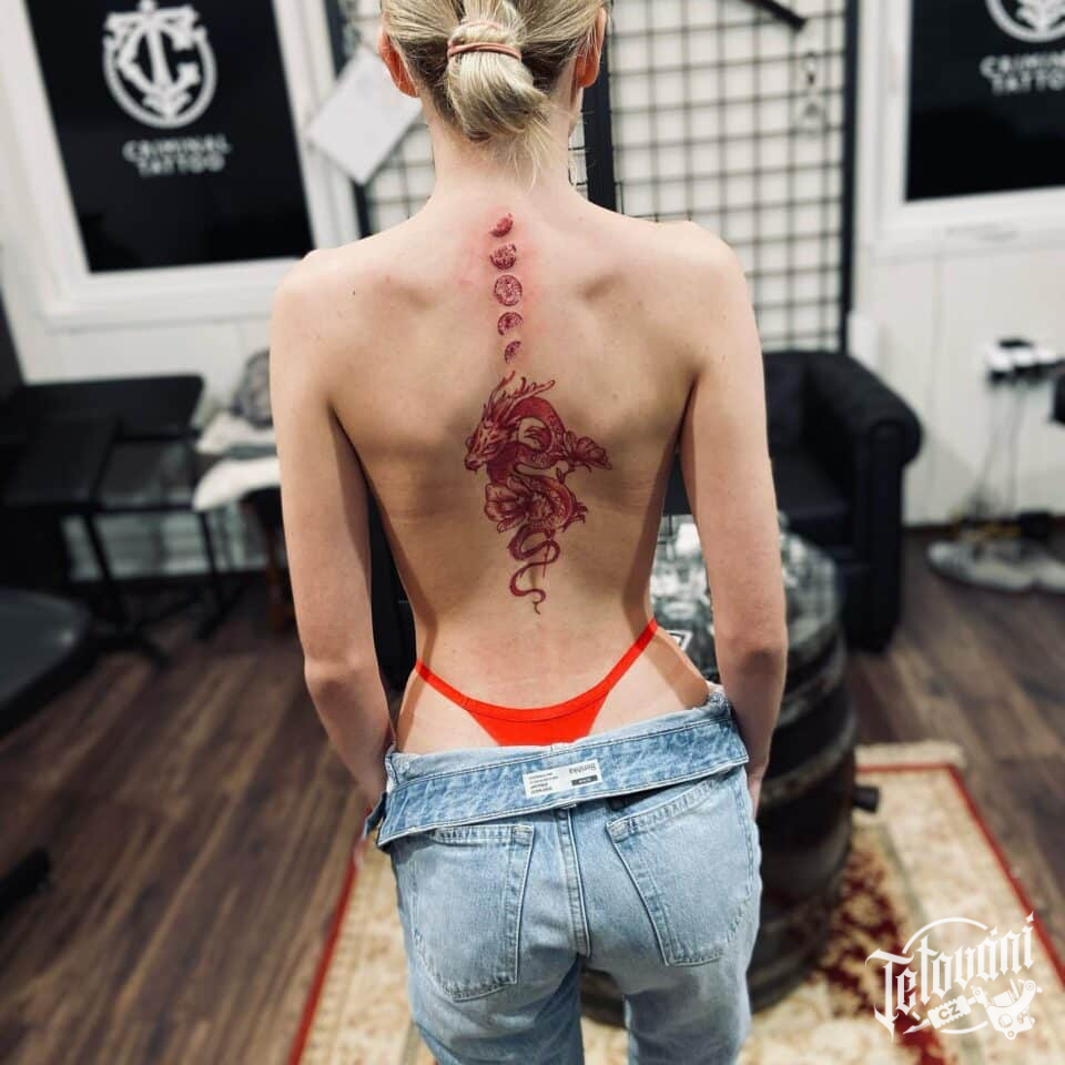 Tetování mýtická bytost drak, znaky a symboly na páteř