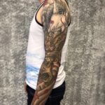 Tetování mýtická bytost drak, znaky a symboly síly, rukáv
