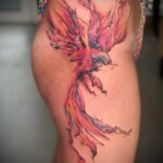 Tetování mýtická bytost fénix na bok stehna