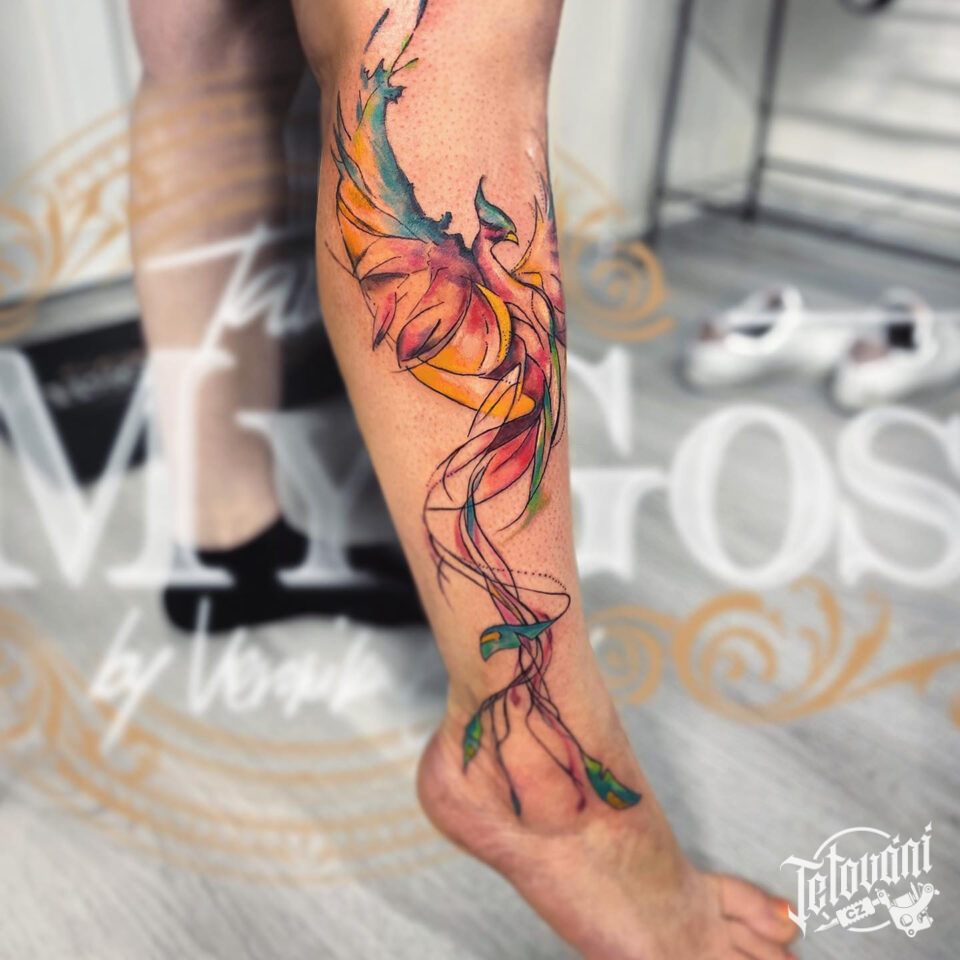 Tetování mýtická bytost, Fénix na holeni