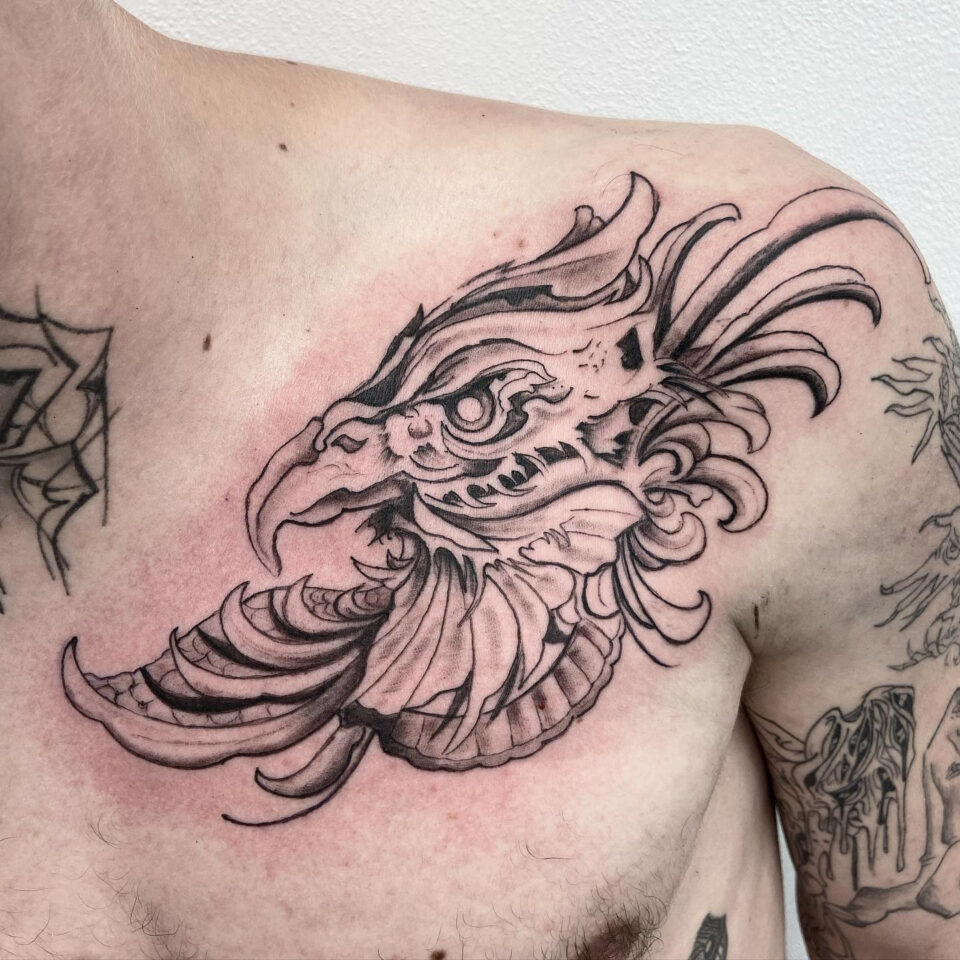 Tetování mýtická bytost, Fénix na hrudi
