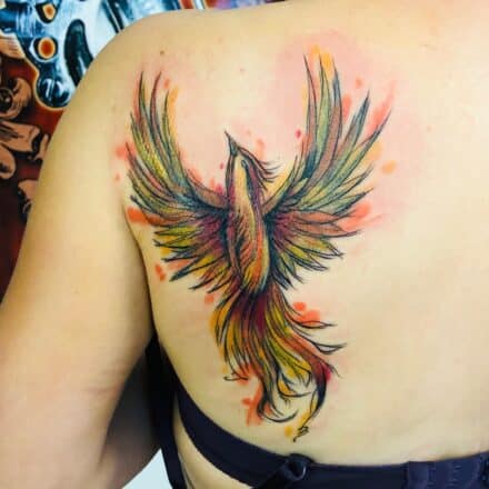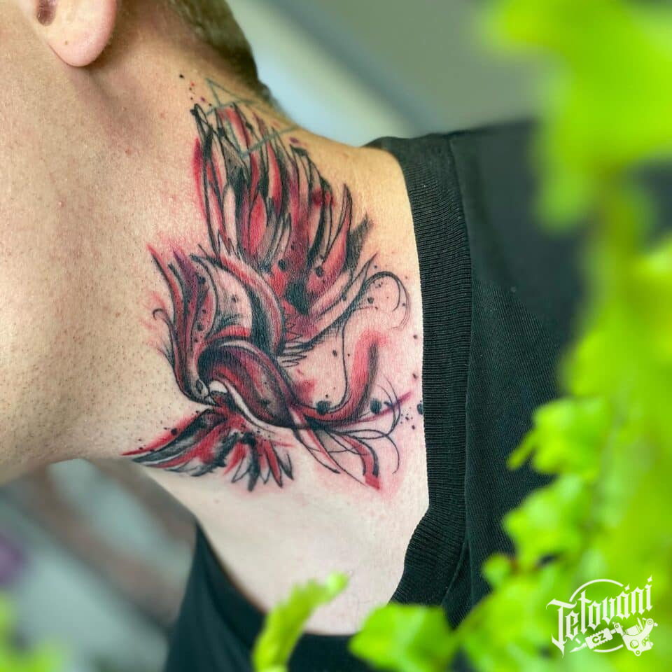 Tetování mýtická bytost, Fénix na krku