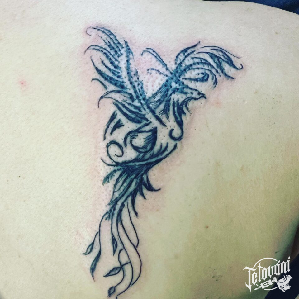 Tetování mýtická bytost fénix na lopatku