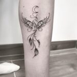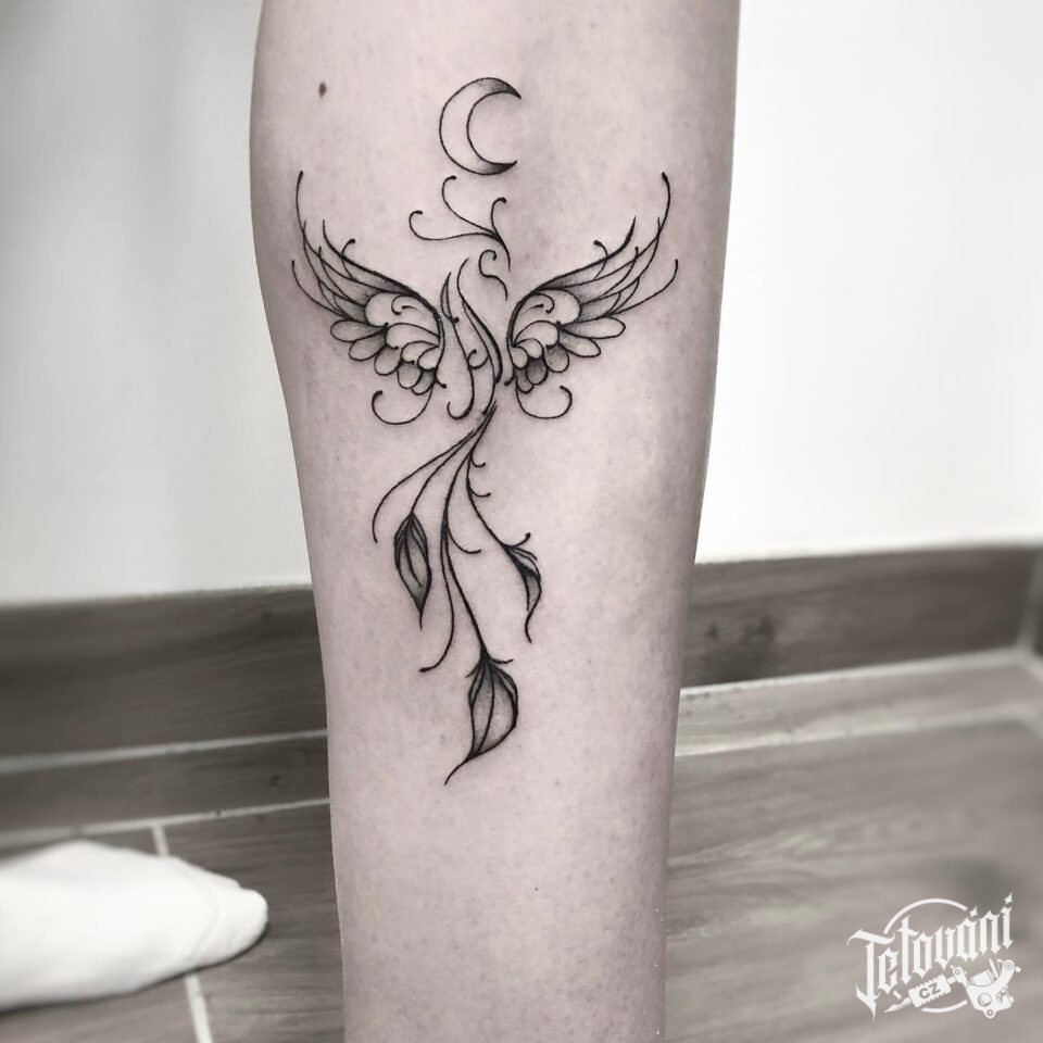Tetování mýtická bytost fénix na lýtko
