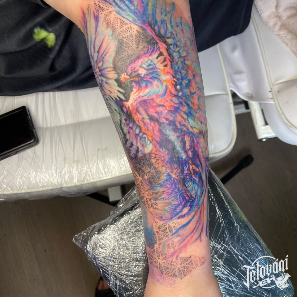 Tetování mýtická bytost, Fénix na předloktí