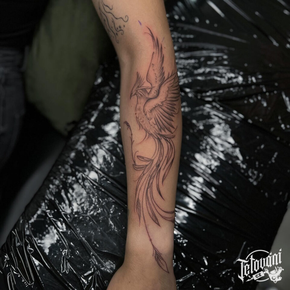 Tetování mýtická bytost, Fénix na předloktí