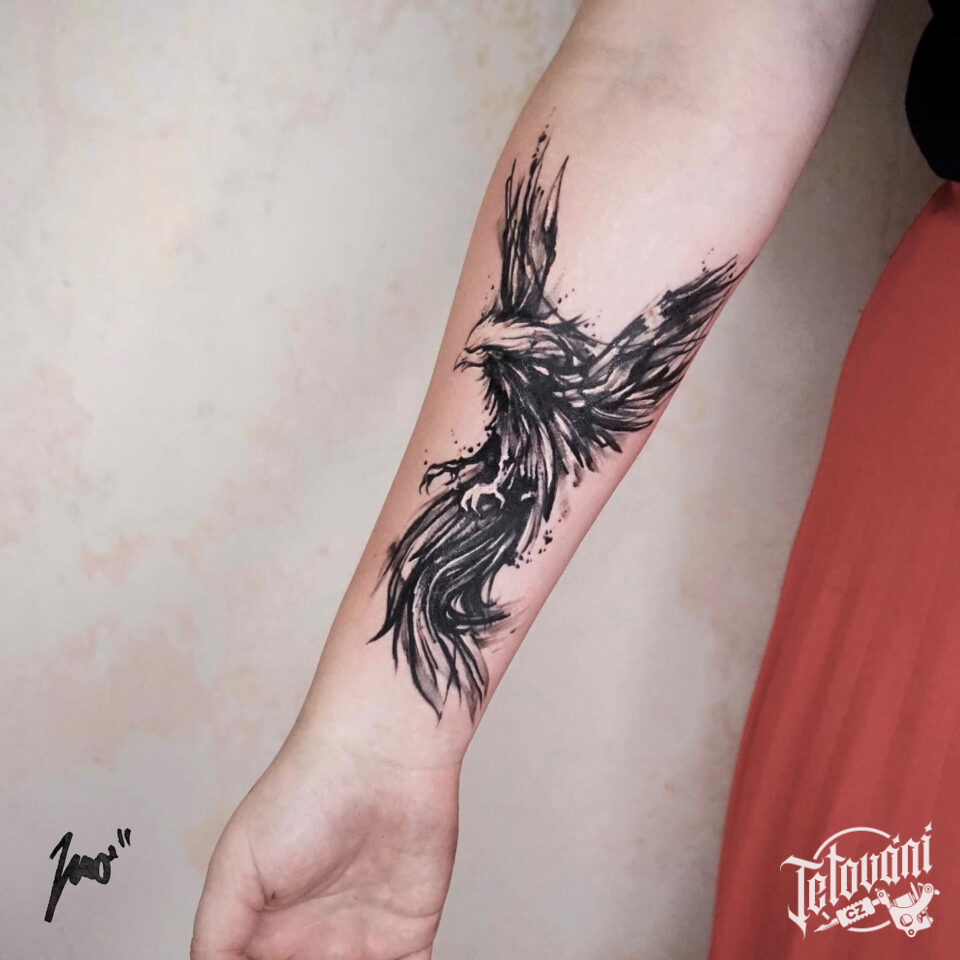 Tetování mýtická bytost, Fénix na předloktí