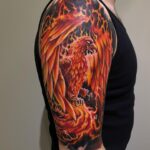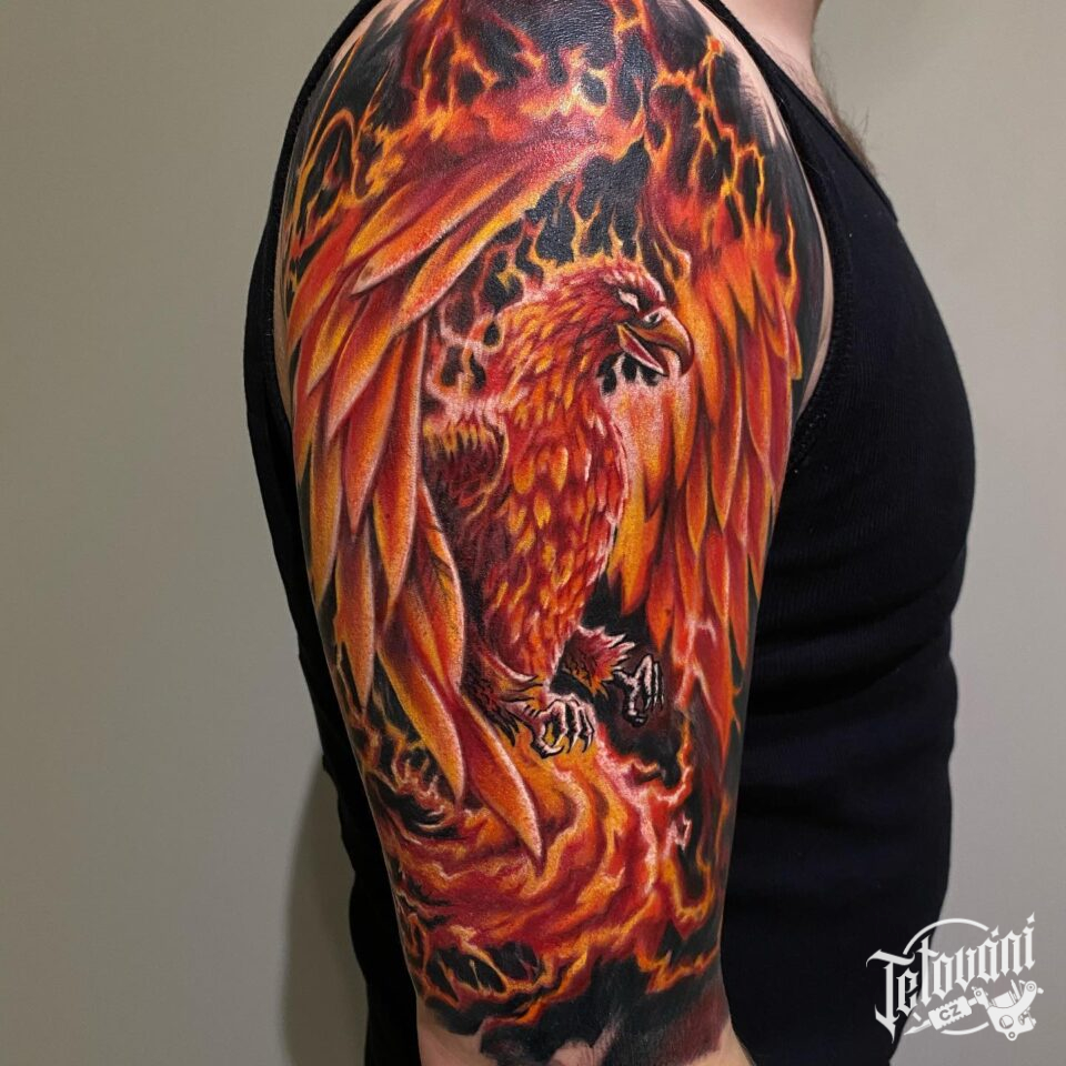 Tetování mýtická bytost Fénix na rameno