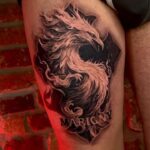 Tetování mýtická bytost fénix na stehno