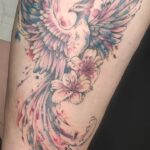 Tetování mýtická bytost fénix na stehno