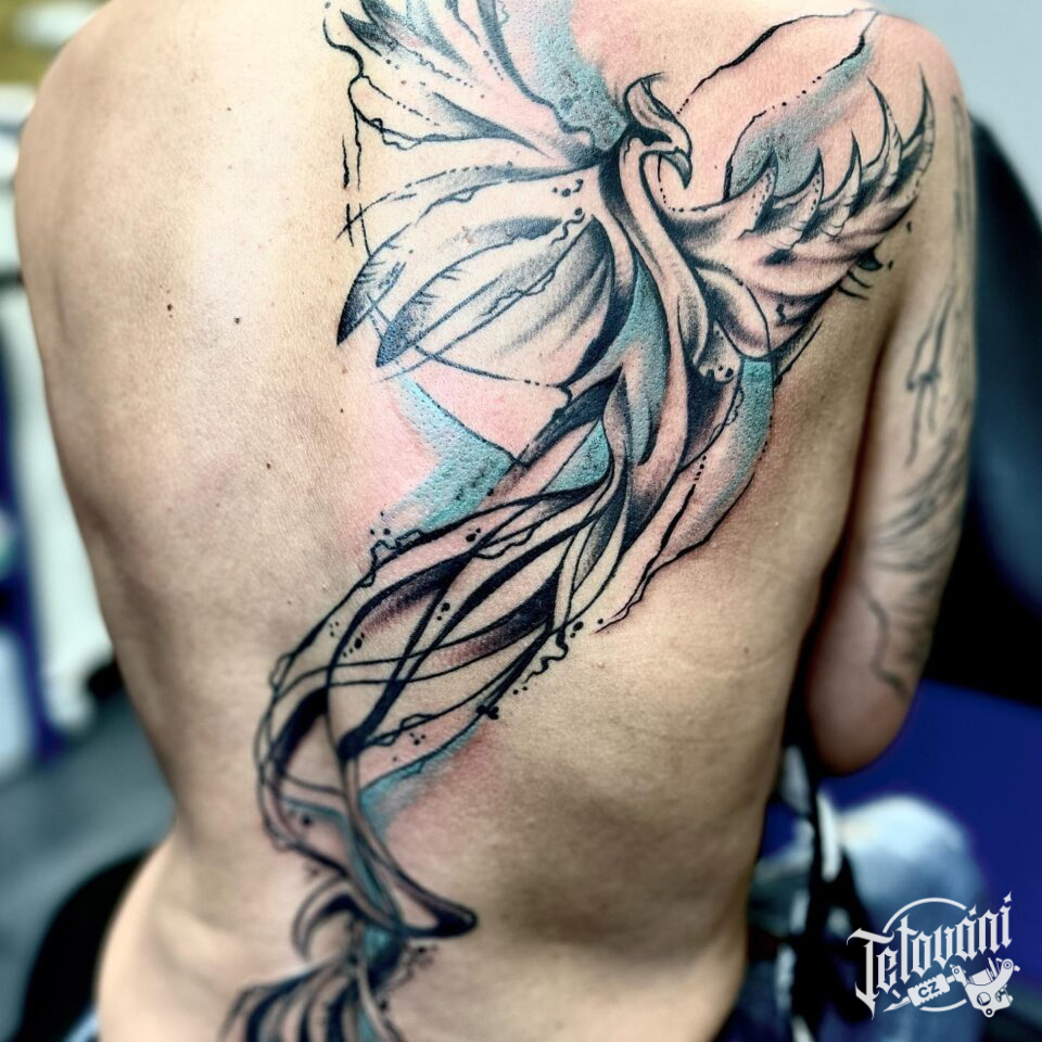 Tetování mýtická bytost fénix na záda