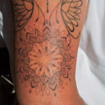 Tetování mýtická bytost, Fénix, ornamenty, mandaly, rukáv