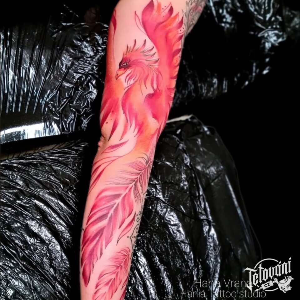 Tetování mýtická bytost, Fénix, rukáv