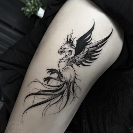Tetování mýtická bytost, Fénix s květinami na předloktí
