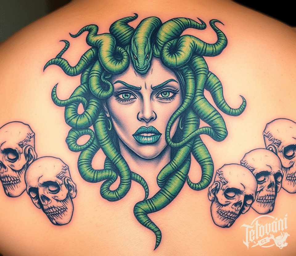 Tetování mýtická bytost MEDÚZA, mytologie na záda