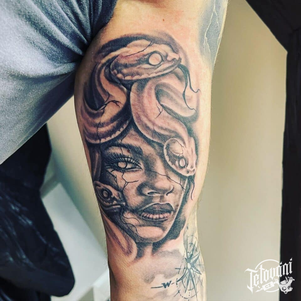 Tetování mýtická bytost medúza na paži