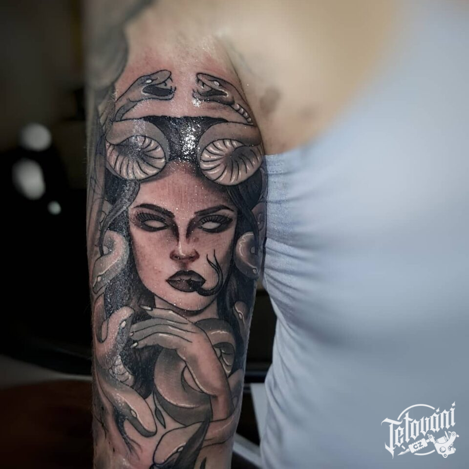 Tetování mýtická bytost medúza na paži