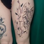 Tetování, mytická bytost mořská panna, moře, větvička na stehno