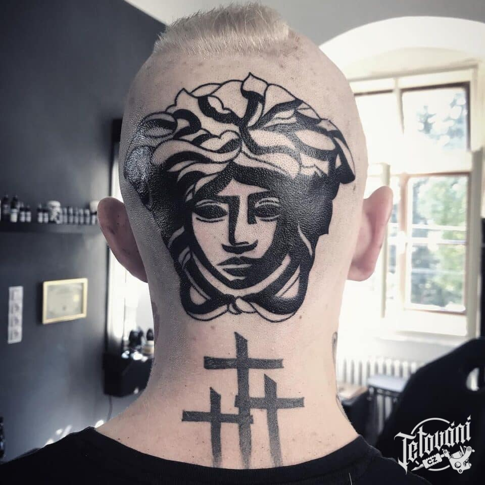 Tetování mýtická bytost, mýtická medúza na hlavě