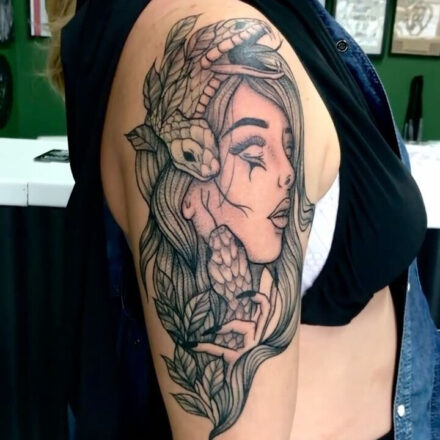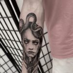 Tetování mýtická bytost, mýtická medúza na předloktí