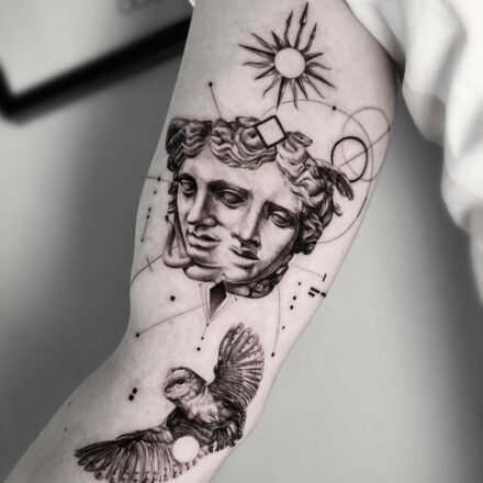 Tetování mýtická bytost, mýtická medúza na předloktí