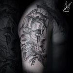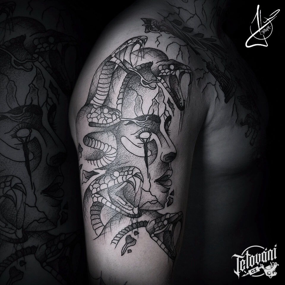 Tetování mýtická bytost, mýtická medúza na rameni