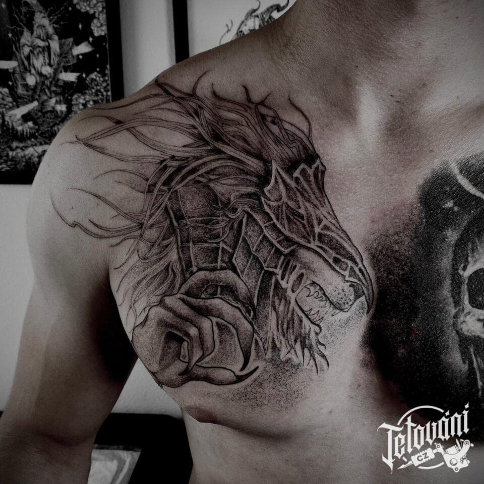 Tetování mýtická bytost na hrudi