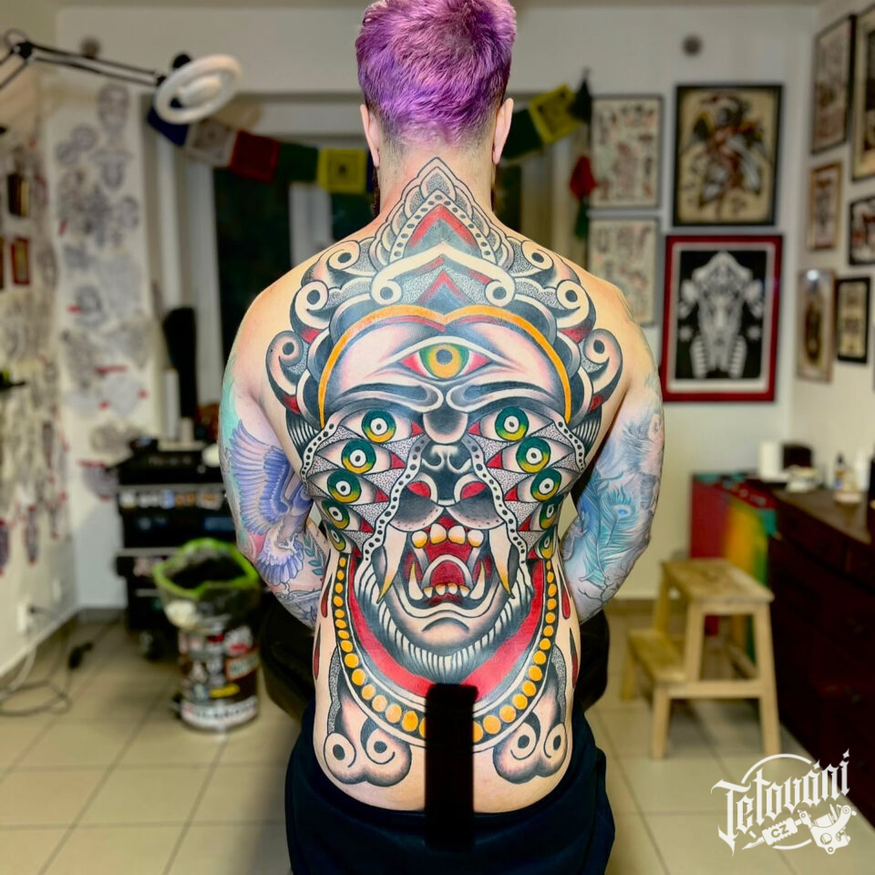 Tetování mýtická bytost na zádech