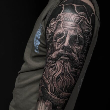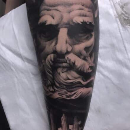 Tetování mýtická bytost, portrét Zeuse na rameni