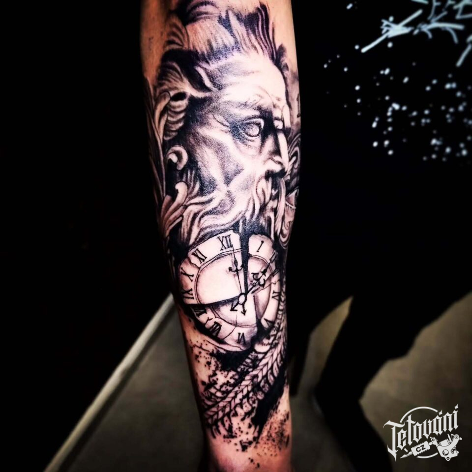 Tetování mýtická bytost, Poseidon a hodiny na předloktí