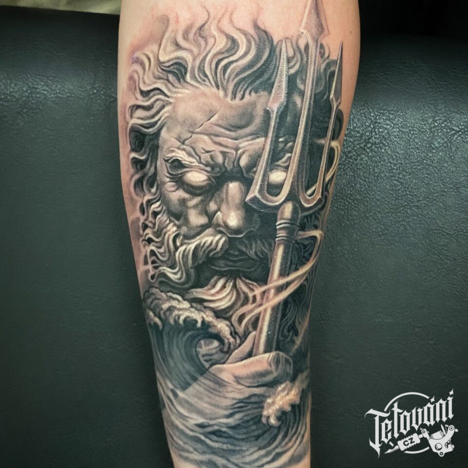 Tetování mýtická bytost Poseidon řecké mytologie na předloktí