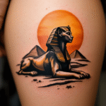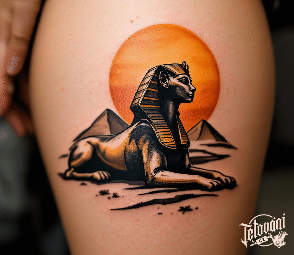 Tetování mýtická bytost Tutanchamon, egyptský symbol na stehno