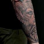 Tetování mýtická bytost Valkýra a Zeus, náboženství na předloktí