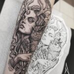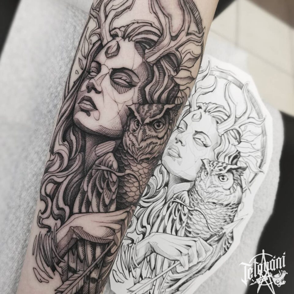 Tetování mýtická bytost, Valkýra se sovou na předloktí