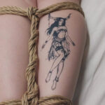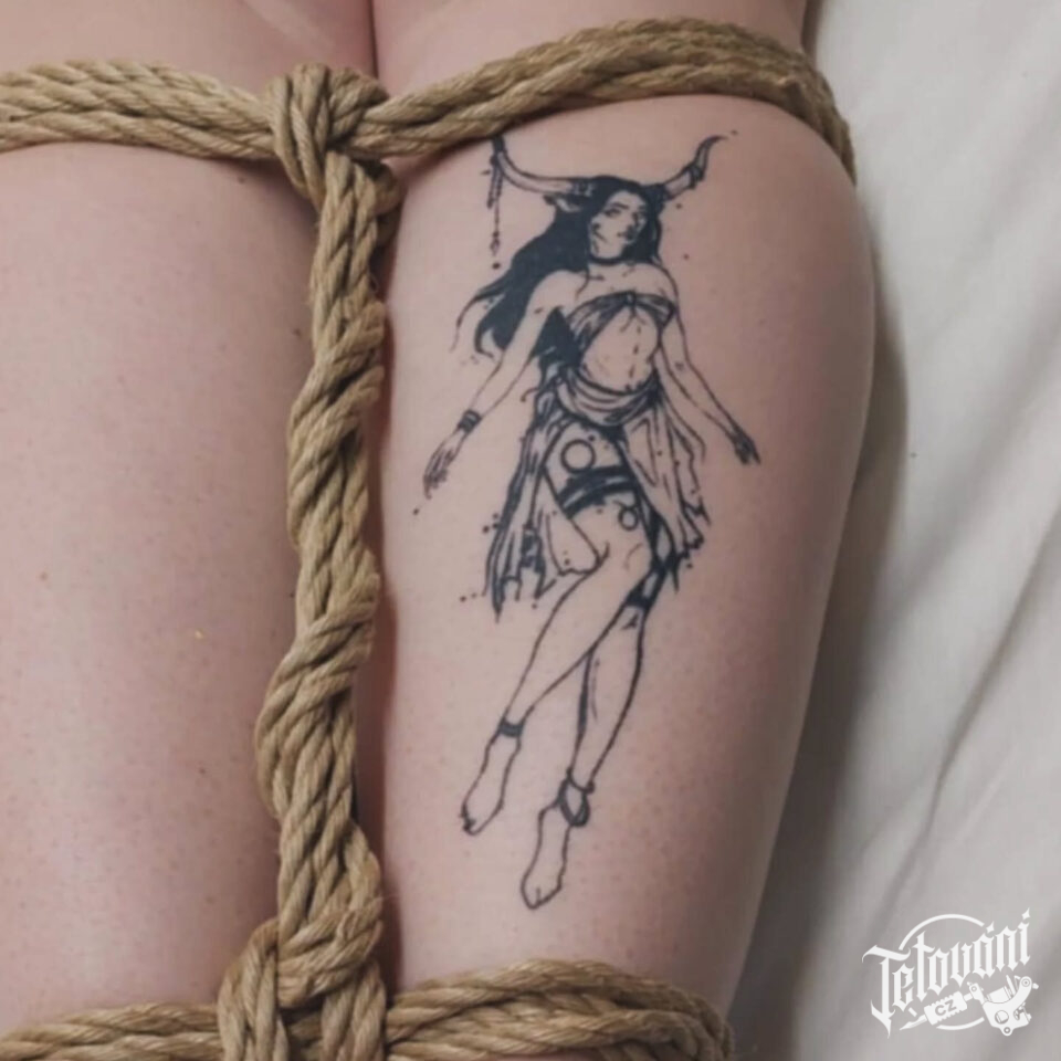 Tetování mýtická bytost žena s parohy na lýtko