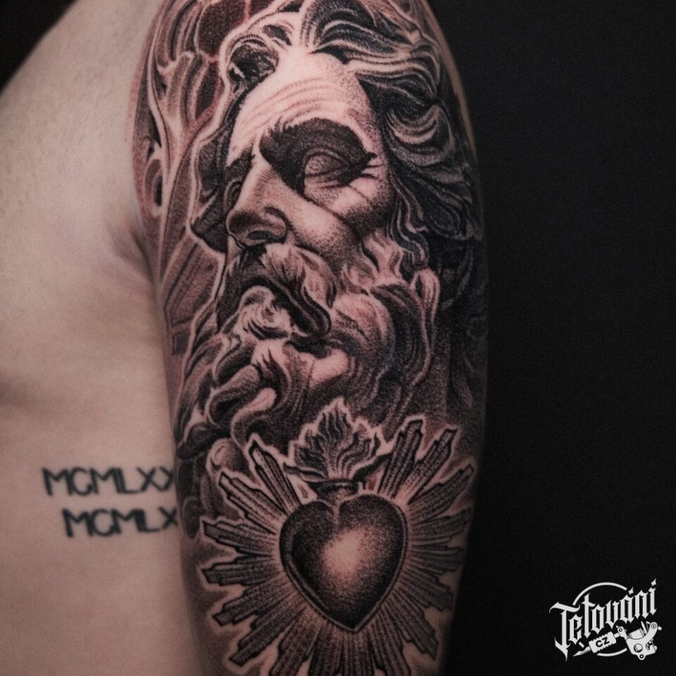 Tetování mýtická bytost, Zeus a srdce na rameni