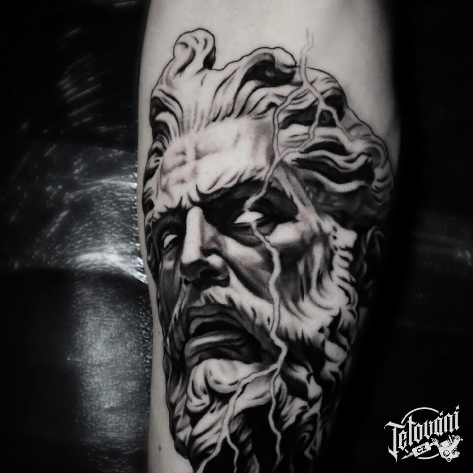 Tetování mýtická bytost Zeus, mytologie na lýtko