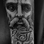 Tetování mýtická bytost Zeus, řecká mytologie, nápisy, písmena na pedloktí