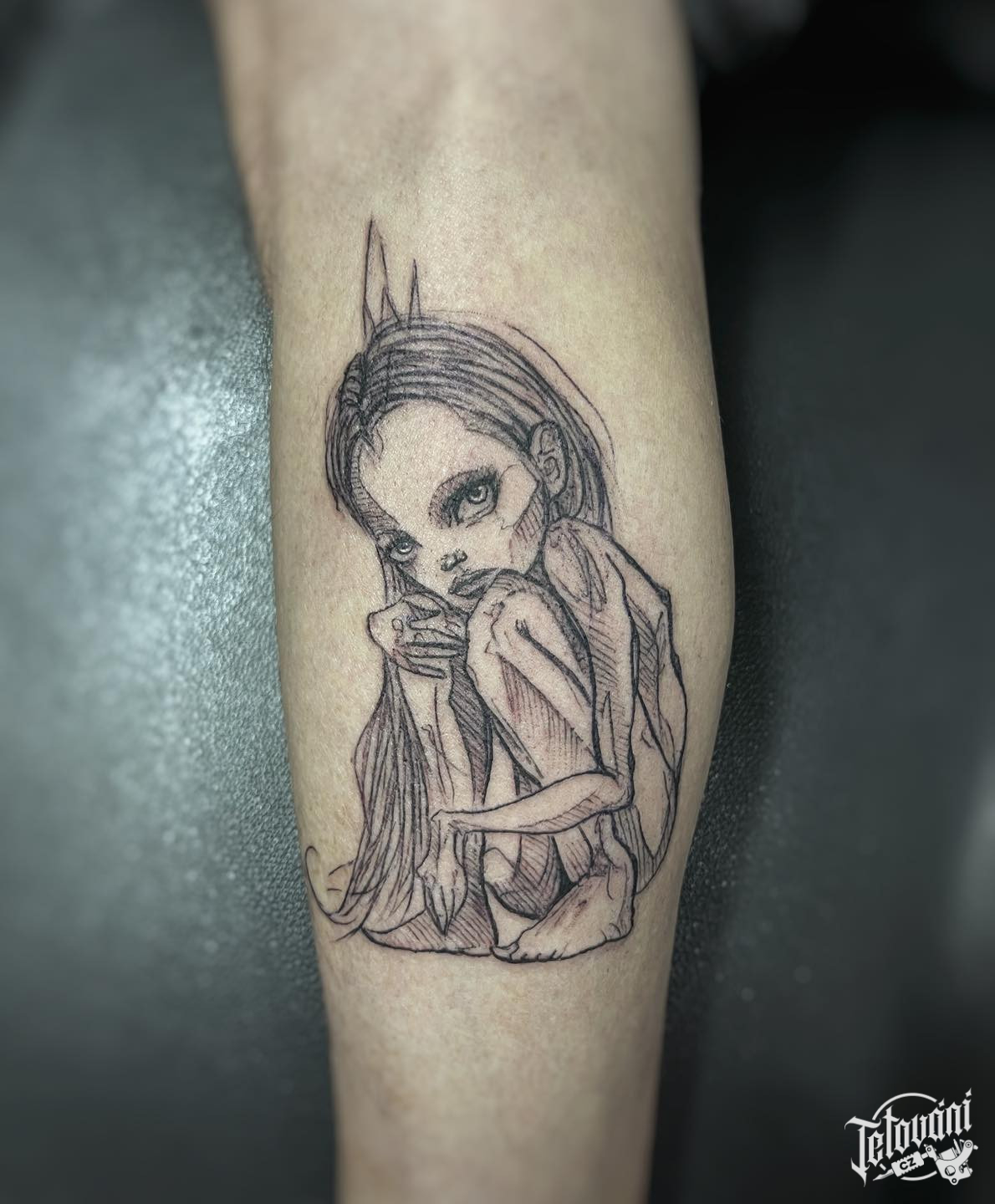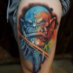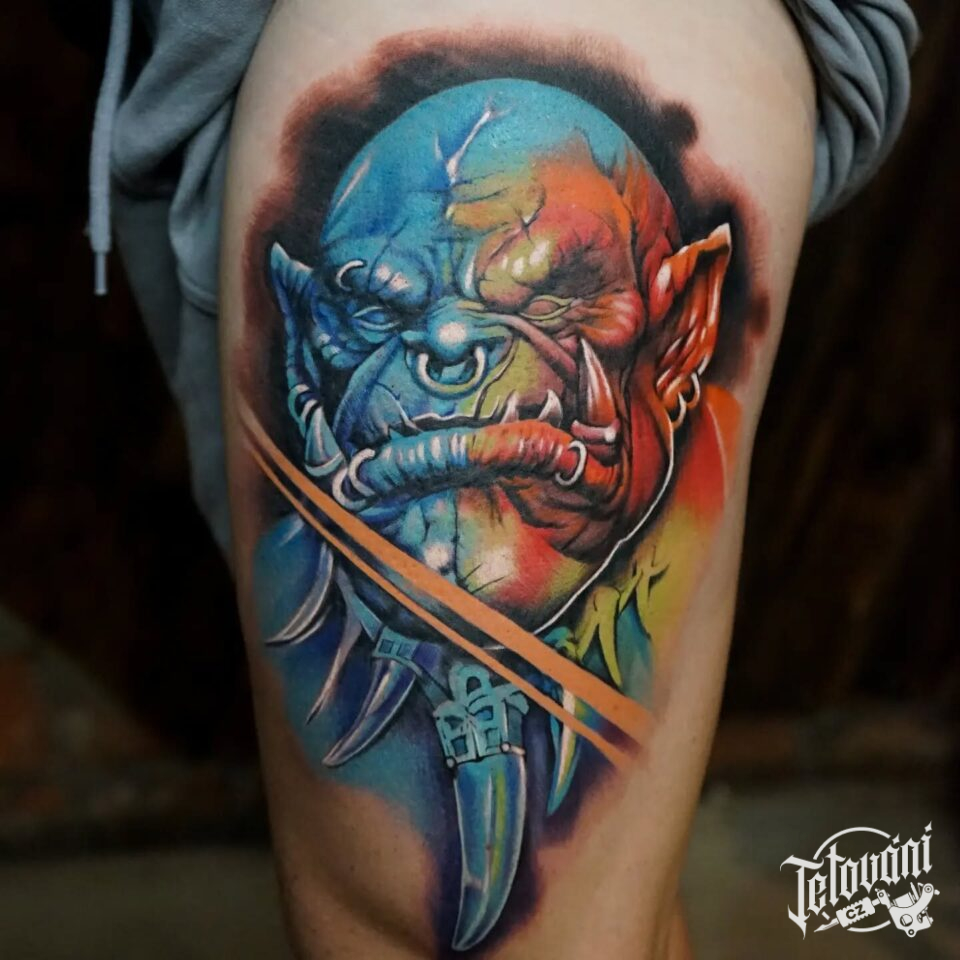 Tetování mýtická bytost zlobr na bok stehna